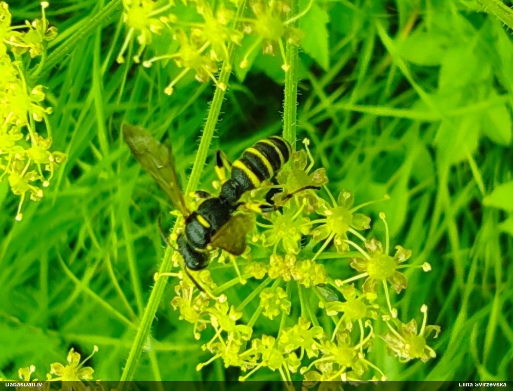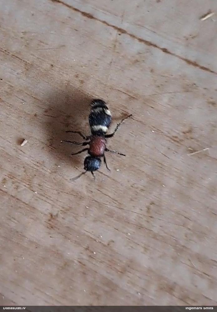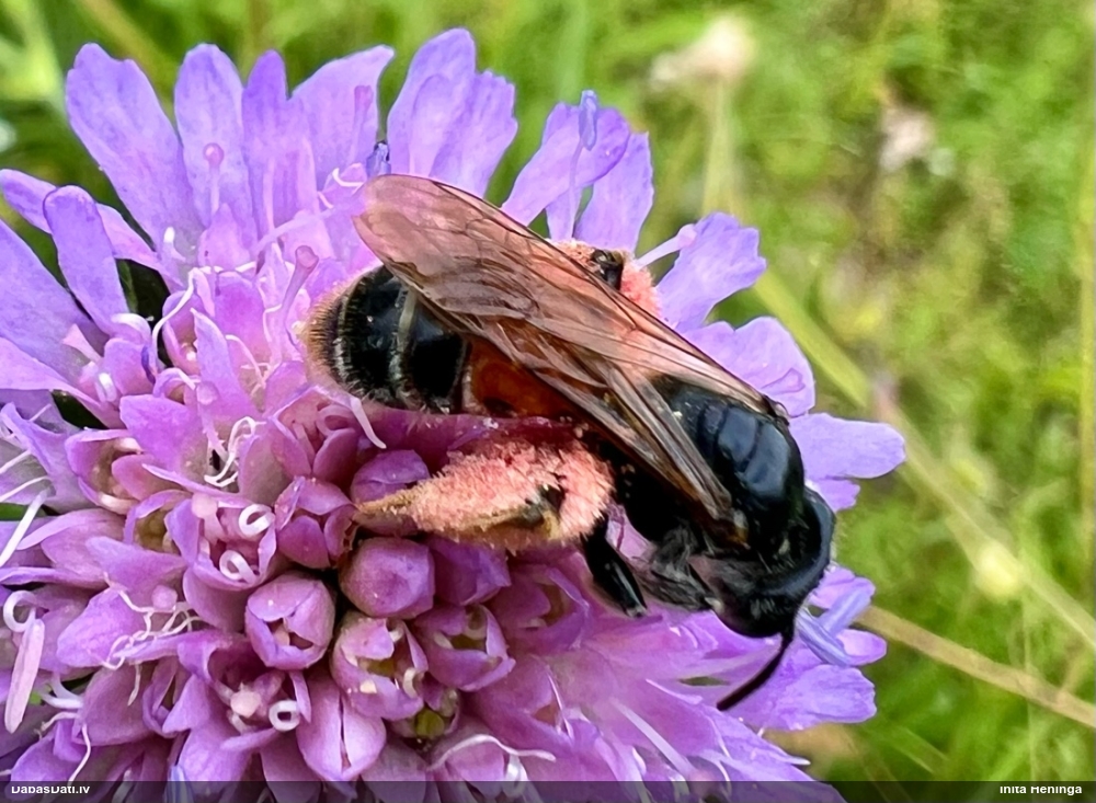 Jāredz tuvāk (kaut vai izkadrēts šis pats attēls) - varbūt tumšā eļļasvabole (Meloe proscarabaeus)