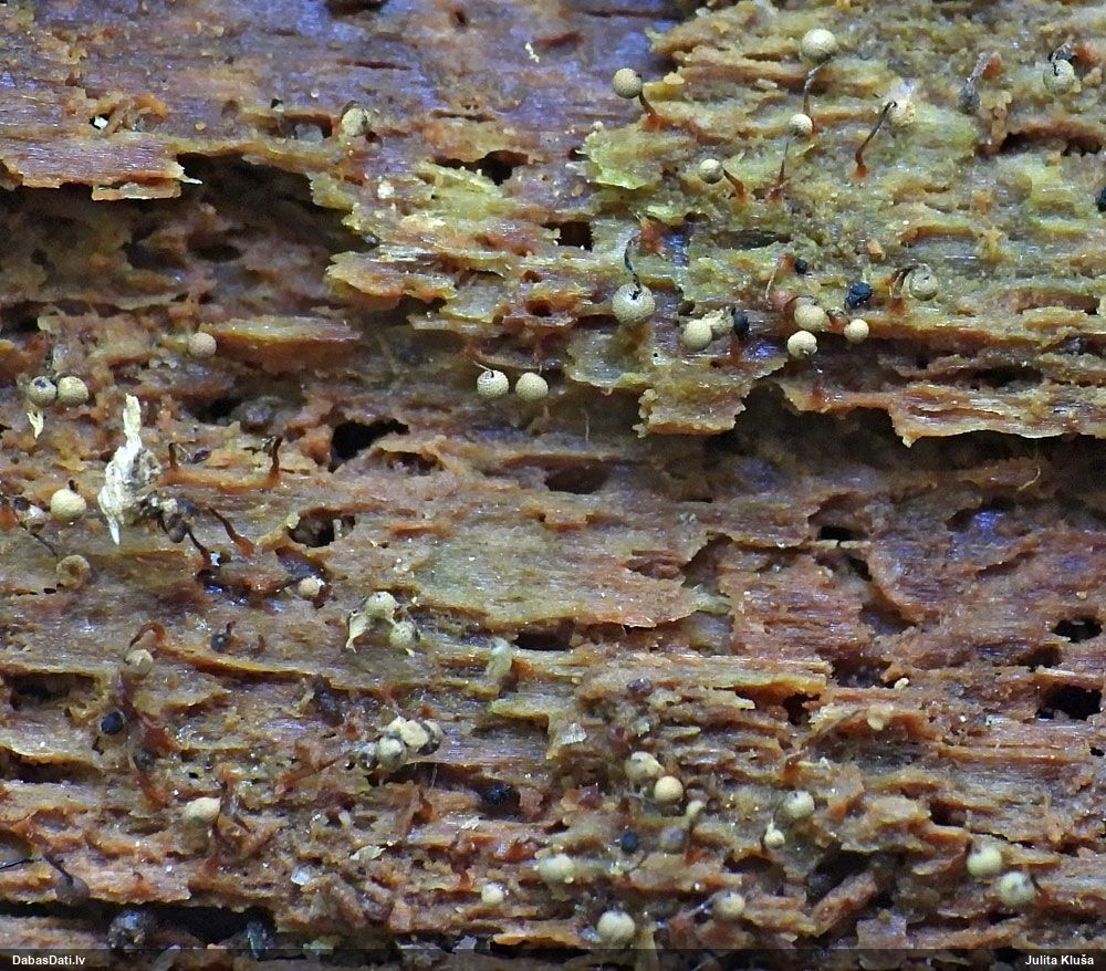 Cukurīte (Didymium) vai pumpurīte (Physarum)? Man galviņas virsma šķiet vairāk kā cukurītei, bet uz sēnes .. pieredze ar pumpurītēm.