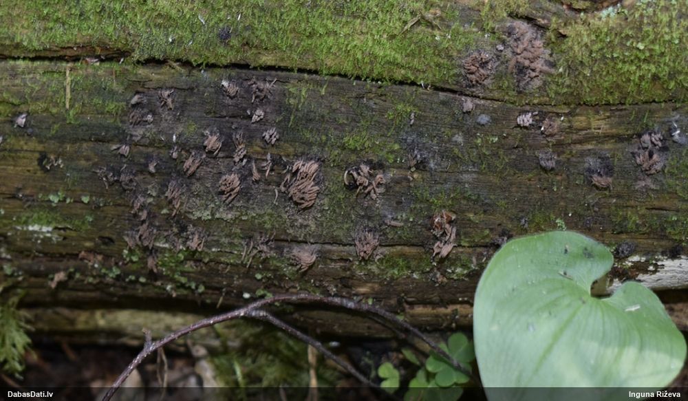 Heterobasidion annosum. Parasti uz priedēm, retāk uz citiem skuju kokiem, vēl retāk uz lapu kokiem, t.sk. uz bērziem.
