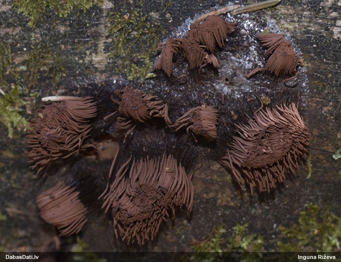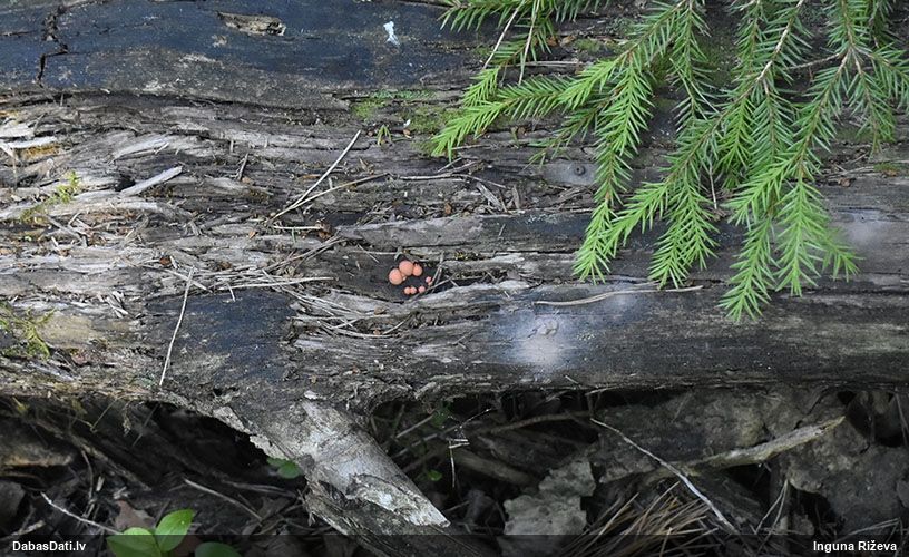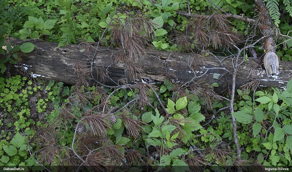 Heterobasidion annosum. Parasti uz priedēm, retāk uz citiem skuju kokiem, vēl retāk uz lapu kokiem, t.sk. uz bērziem.