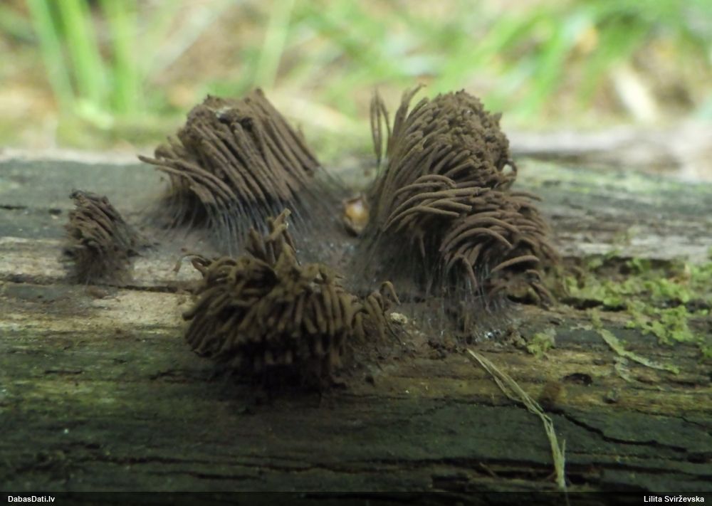 Varētu būt grubuļainais (Fuligo luteonitens), bet jāmikroskopē sporas, lai būtu droši