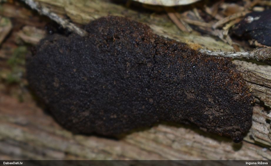Varētu būt grubuļainais (Fuligo luteonitens), bet jāmikroskopē sporas, lai būtu droši
