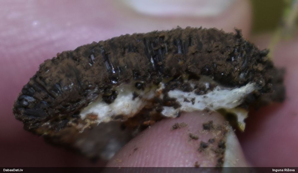Arī šis paraugs pilnībā saēsts, bet kastītē vismaz kaut kādas pulvera atliekas saglabājušās. Sporas atradās arī nebojātas, smuki redzamas tumšāku kārpu grupas, vienīgais - priekš rūsganā ragansviesta par lielu..