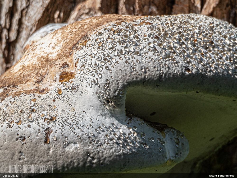 Heterobasidion annosum. Parasti uz priedēm, retāk uz citiem skuju kokiem, vēl retāk uz lapu kokiem, t.sk. uz bērziem.