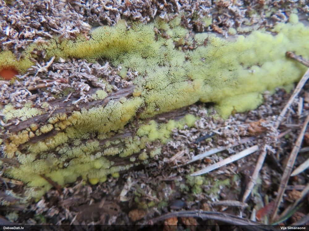 Varētu būt grubuļainais (Fuligo luteonitens), bet jāmikroskopē sporas, lai būtu droši
