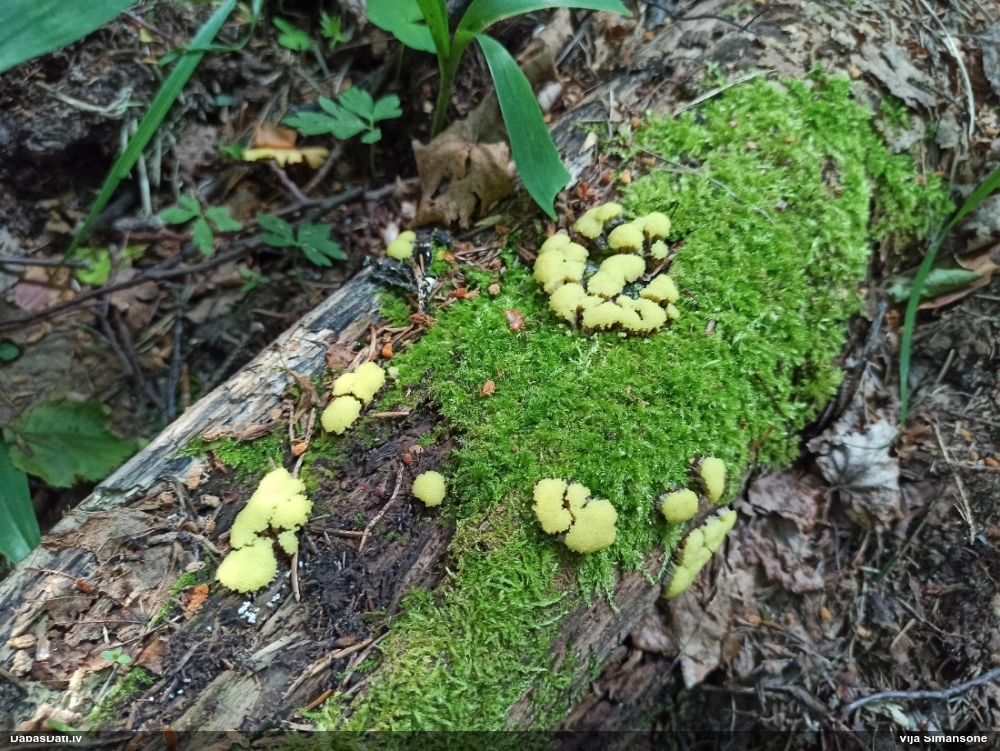 Varētu būt grubuļainais (Fuligo luteonitens), bet jāmikroskopē sporas, lai būtu droši