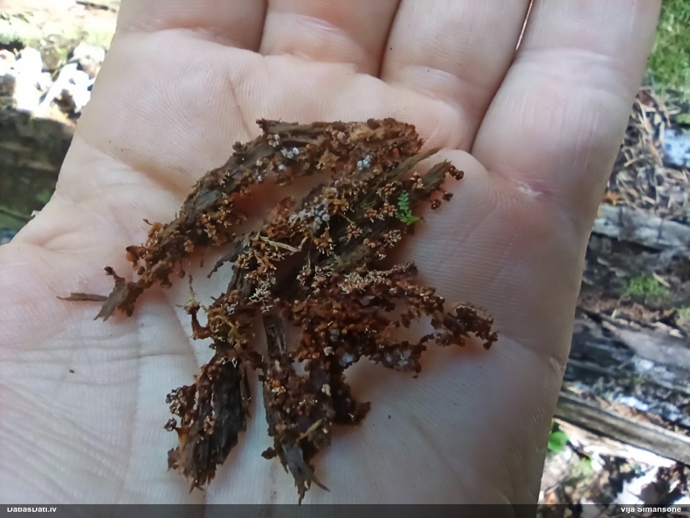 Gada sēnes 2025 sezonu noslēdzot: gan sakomunicējis pašu novērotāju, gan apsekojis uz vietas, pārliecinājos, ka tā tiešām ir 2021. gada atradne (DabasDatos nav ieziņota), tikai "aizbraukusi" par 100+ metriem uz ziemeļaustrumiem no patiesās vietas. Četras dienas vēlāk to, man klātesot, novērojis Raivo Ivulāns un ieziņojis DabasDatos (https://dabasdati.lv/lv/observation/i6u8b1t1411oup15o8nbroneg6/) jau PAREIZAJĀ vietā (taču piezīmēs ģeogr. platuma skaitliskajā vērtībā ir drukas kļūda, kuras dēļ atradne iznāktu nobīdīta par 5½ km tieši uz dienvidiem).
