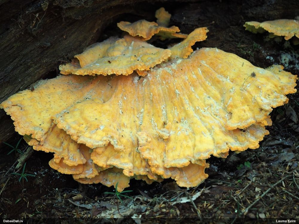 Gada sēnes 2025 sezonu noslēdzot: gan sakomunicējis pašu novērotāju, gan apsekojis uz vietas, pārliecinājos, ka tā tiešām ir 2021. gada atradne (DabasDatos nav ieziņota), tikai "aizbraukusi" par 100+ metriem uz ziemeļaustrumiem no patiesās vietas. Četras dienas vēlāk to, man klātesot, novērojis Raivo Ivulāns un ieziņojis DabasDatos (https://dabasdati.lv/lv/observation/i6u8b1t1411oup15o8nbroneg6/) jau PAREIZAJĀ vietā (taču piezīmēs ģeogr. platuma skaitliskajā vērtībā ir drukas kļūda, kuras dēļ atradne iznāktu nobīdīta par 5½ km tieši uz dienvidiem).