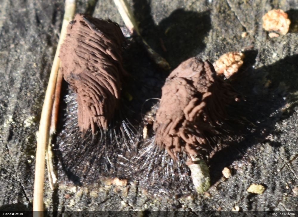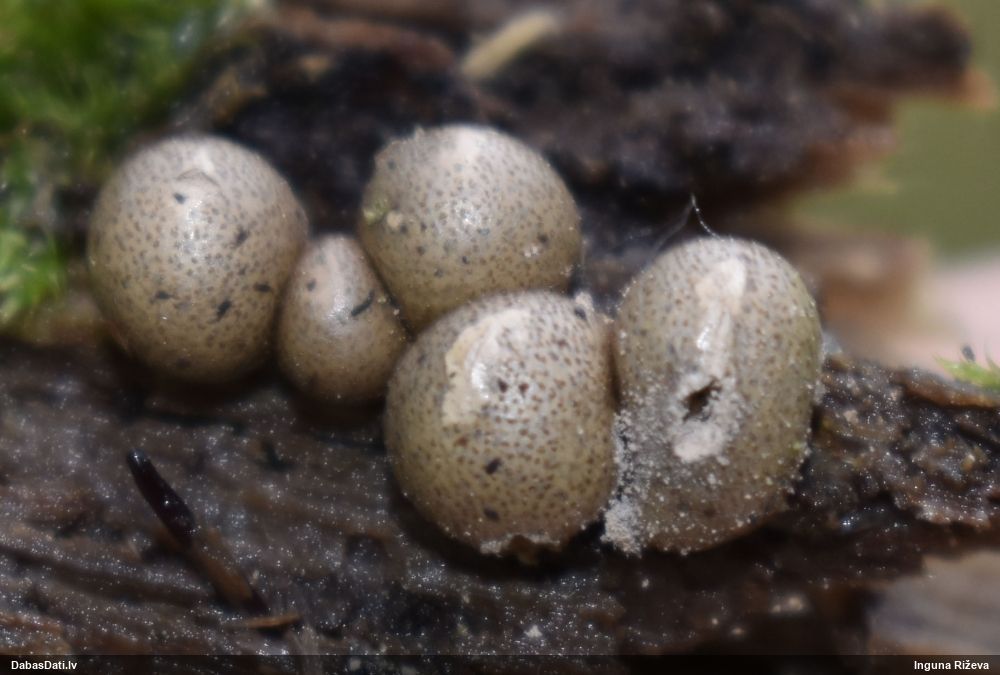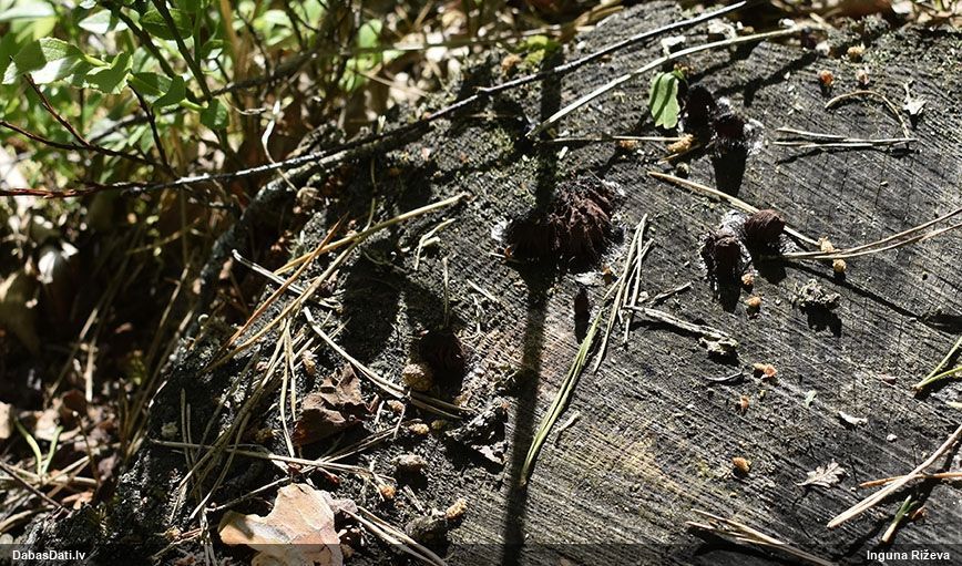 Hmm, nepievērsu tam uzmanību, bet tas interesanti, paldies! Vispār izskatās pēc vālenītes, ne kūlītes, speciāli salīdzināju aprakstus ar Stemonitis splendens, bet mikroskopiski tomēr atbilst visām kūlītes pazīmēm, un abas mikroskopētās kūlītes - vienādas. Tur kāds skujkoks blakus neaug?