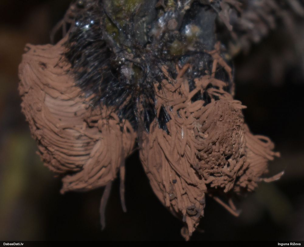 Hmm, nepievērsu tam uzmanību, bet tas interesanti, paldies! Vispār izskatās pēc vālenītes, ne kūlītes, speciāli salīdzināju aprakstus ar Stemonitis splendens, bet mikroskopiski tomēr atbilst visām kūlītes pazīmēm, un abas mikroskopētās kūlītes - vienādas. Tur kāds skujkoks blakus neaug?