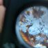 Arī šis paraugs pilnībā saēsts, bet kastītē vismaz kaut kādas pulvera atliekas saglabājušās. Sporas atradās arī nebojātas, smuki redzamas tumšāku kārpu grupas, vienīgais - priekš rūsganā ragansviesta par lielu..