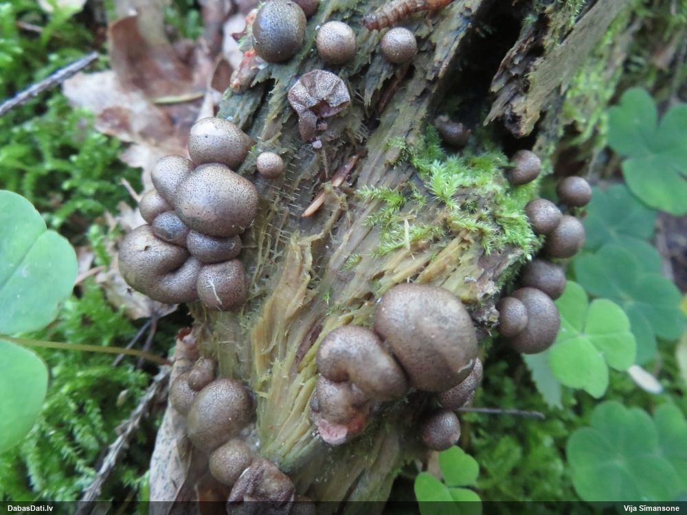 Hmm, nepievērsu tam uzmanību, bet tas interesanti, paldies! Vispār izskatās pēc vālenītes, ne kūlītes, speciāli salīdzināju aprakstus ar Stemonitis splendens, bet mikroskopiski tomēr atbilst visām kūlītes pazīmēm, un abas mikroskopētās kūlītes - vienādas. Tur kāds skujkoks blakus neaug?
