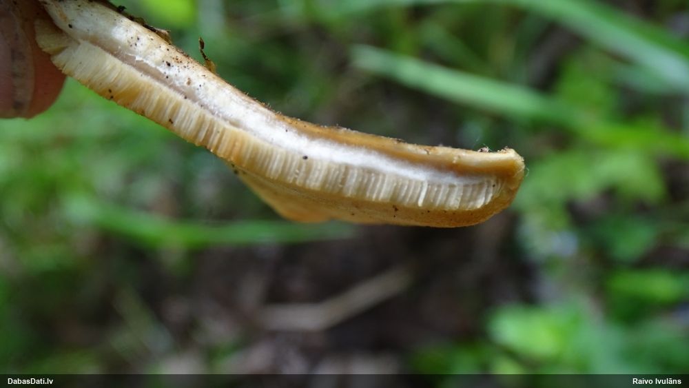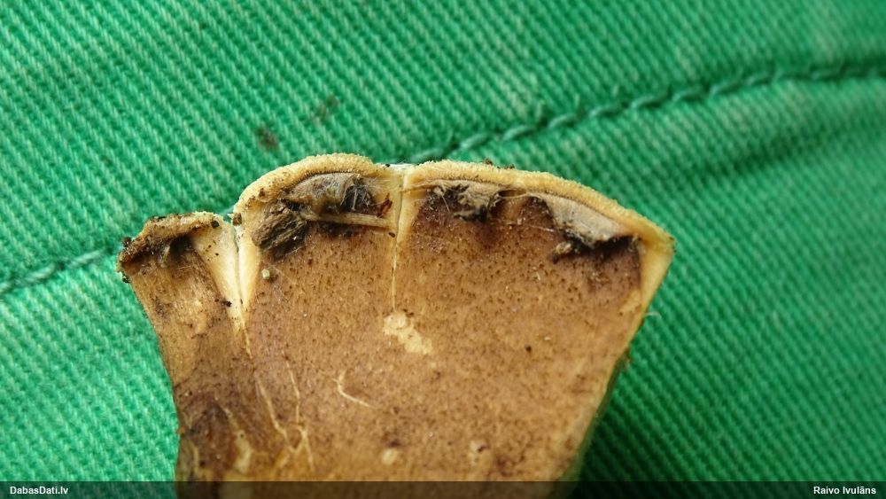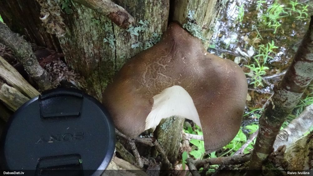 Gada sēnes 2025 sezonu noslēdzot: gan sakomunicējis pašu novērotāju, gan apsekojis uz vietas, pārliecinājos, ka tā tiešām ir 2021. gada atradne (DabasDatos nav ieziņota), tikai "aizbraukusi" par 100+ metriem uz ziemeļaustrumiem no patiesās vietas. Četras dienas vēlāk to, man klātesot, novērojis Raivo Ivulāns un ieziņojis DabasDatos (https://dabasdati.lv/lv/observation/i6u8b1t1411oup15o8nbroneg6/) jau PAREIZAJĀ vietā (taču piezīmēs ģeogr. platuma skaitliskajā vērtībā ir drukas kļūda, kuras dēļ atradne iznāktu nobīdīta par 5½ km tieši uz dienvidiem).
