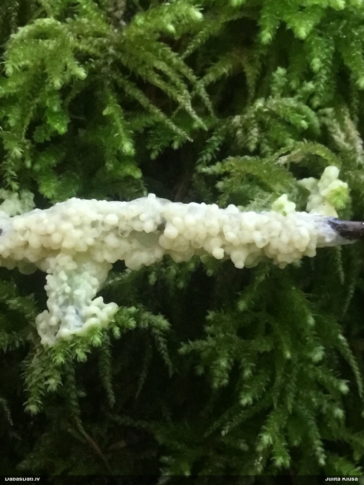 Šim Vijas paraugam iekšas precīzi tādas pašas - baltdzeltenas, ar kapilīciju ar maziem mezgliem, un virsma balta. Sporas gan lielākas: https://dabasdati.lv/lv/observation/b146f03a39b8789e2897007d9e464255/