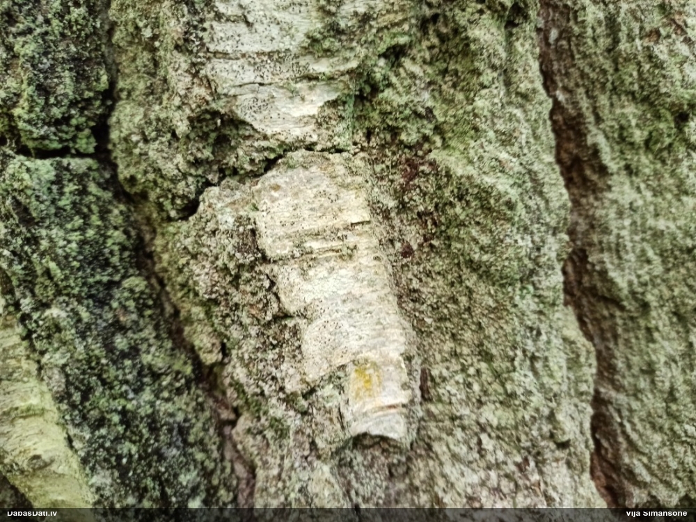 Skujkoks nav par tuvumā. Ir tikai lapu koki - lazda, kastanis, ābelītes. Otrpus celmam (D pusē) lejasdaļā, ko pamanīju pirmo, arī bija kaut kas no šim līdzīga, bet tik izsporojies, ka palicis tikai paliels brūns sporu pleķis. Intriga pavērot nākamgad.