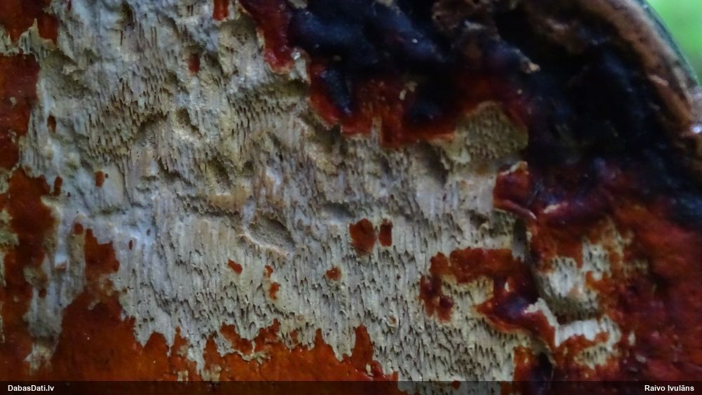 Gada sēnes 2025 sezonu noslēdzot: gan sakomunicējis pašu novērotāju, gan apsekojis uz vietas, pārliecinājos, ka tā tiešām ir 2021. gada atradne (DabasDatos nav ieziņota), tikai "aizbraukusi" par 100+ metriem uz ziemeļaustrumiem no patiesās vietas. Četras dienas vēlāk to, man klātesot, novērojis Raivo Ivulāns un ieziņojis DabasDatos (https://dabasdati.lv/lv/observation/i6u8b1t1411oup15o8nbroneg6/) jau PAREIZAJĀ vietā (taču piezīmēs ģeogr. platuma skaitliskajā vērtībā ir drukas kļūda, kuras dēļ atradne iznāktu nobīdīta par 5½ km tieši uz dienvidiem).