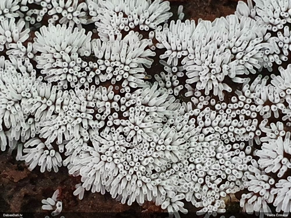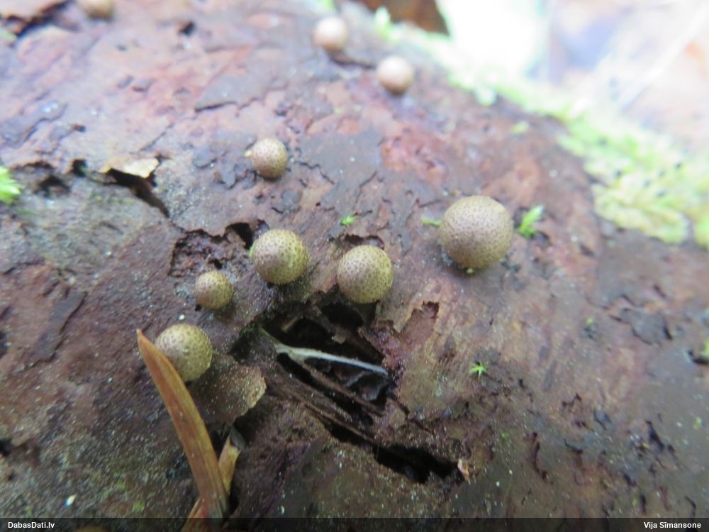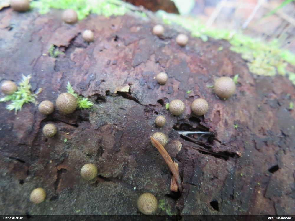 Hmm, nepievērsu tam uzmanību, bet tas interesanti, paldies! Vispār izskatās pēc vālenītes, ne kūlītes, speciāli salīdzināju aprakstus ar Stemonitis splendens, bet mikroskopiski tomēr atbilst visām kūlītes pazīmēm, un abas mikroskopētās kūlītes - vienādas. Tur kāds skujkoks blakus neaug?