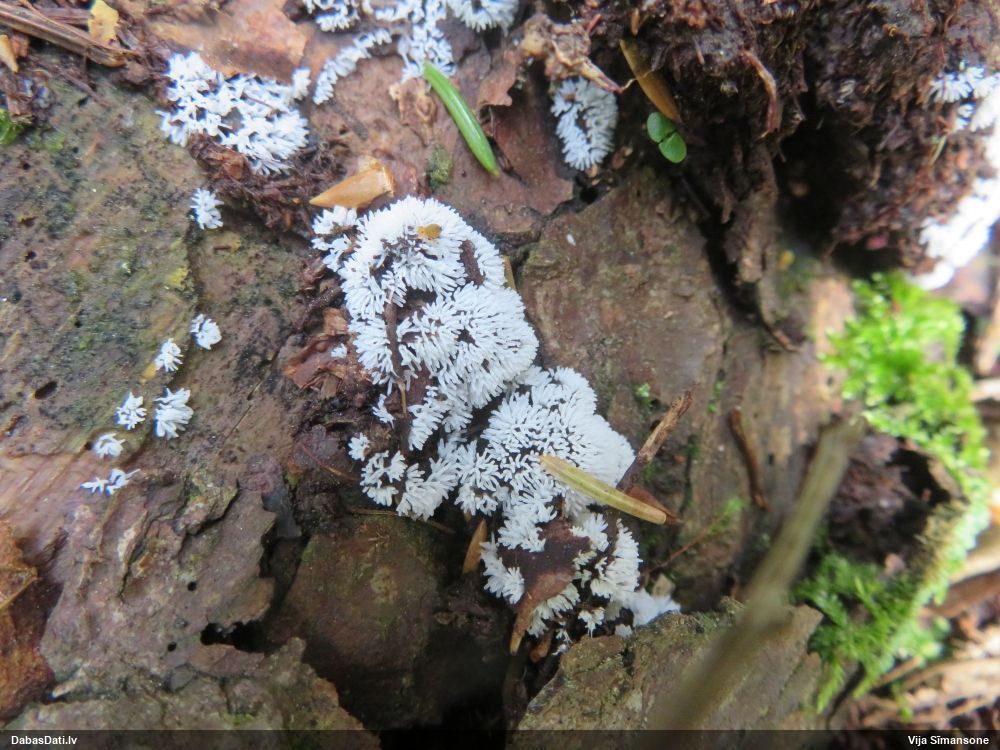 Julita, atminos to, ka pērnā vasara bija sausa, dārzus laistījām trakumā. Bet, uz Silarašiem parasti braucu gailenēs, tātad jau bija lietainas dienas, parasts sēņu laika mikroklimats. Gaileņojot arī uzgāju šo. Mežs tur galīgi nav slapjš, vairāk priežu-egļu, nogabali daļēji pacirsti, ir arī priežu jaunaudzes. Arī pušķainajai vālenītei ir gan balts (Dziedavā minēts), gan dzeltens (manos novērojumos redzēts) plazmodijs, kad vēl pavisam bumbiņu stadijā. Mans gan nav mikroskopiski noteikts, tikai pēc garuma. Tā, ka iespējams augu vālenītei arī ir dažādi...