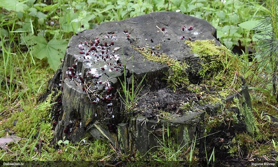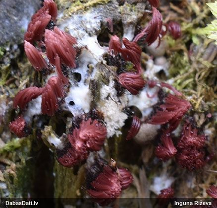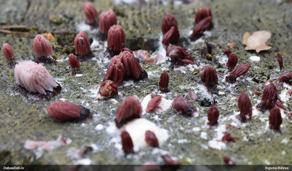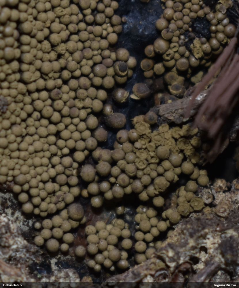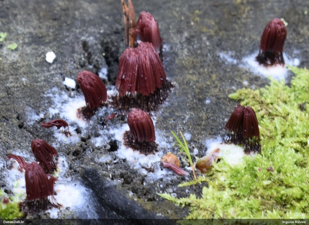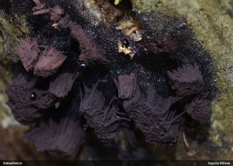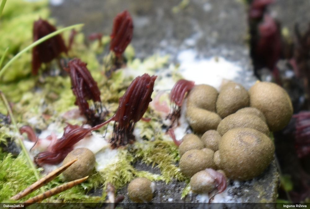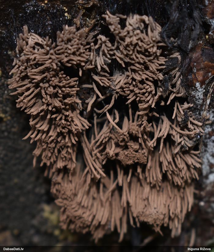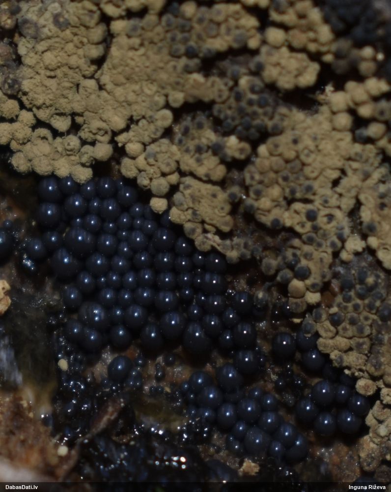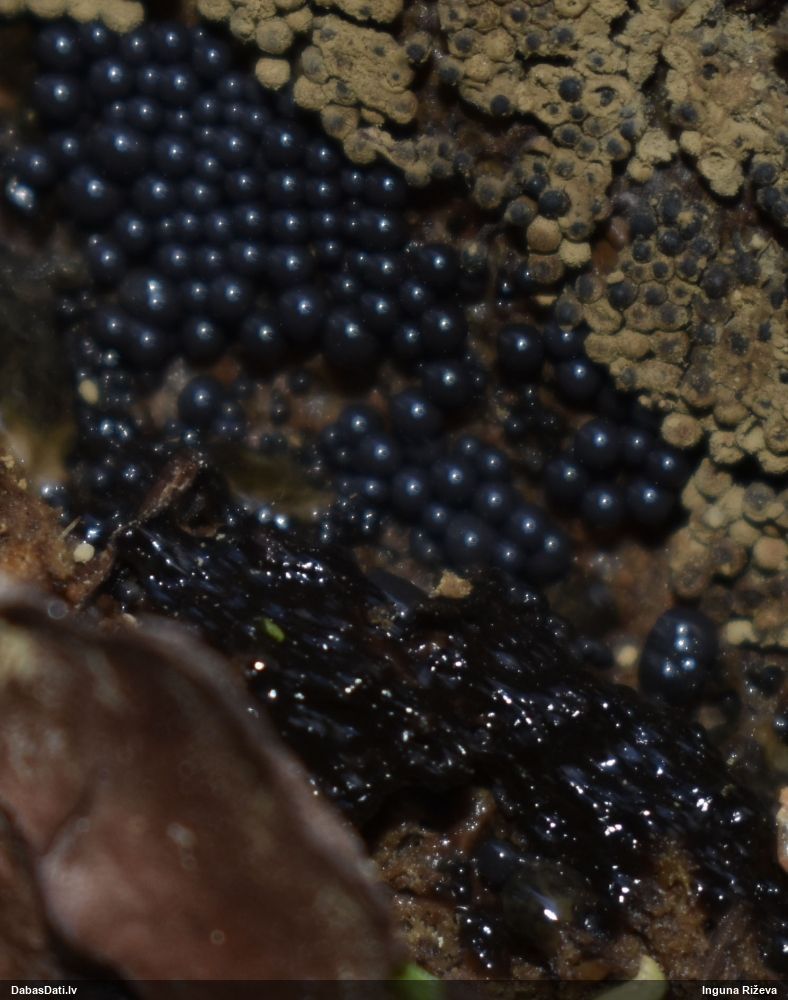 Hmm, nepievērsu tam uzmanību, bet tas interesanti, paldies! Vispār izskatās pēc vālenītes, ne kūlītes, speciāli salīdzināju aprakstus ar Stemonitis splendens, bet mikroskopiski tomēr atbilst visām kūlītes pazīmēm, un abas mikroskopētās kūlītes - vienādas. Tur kāds skujkoks blakus neaug?