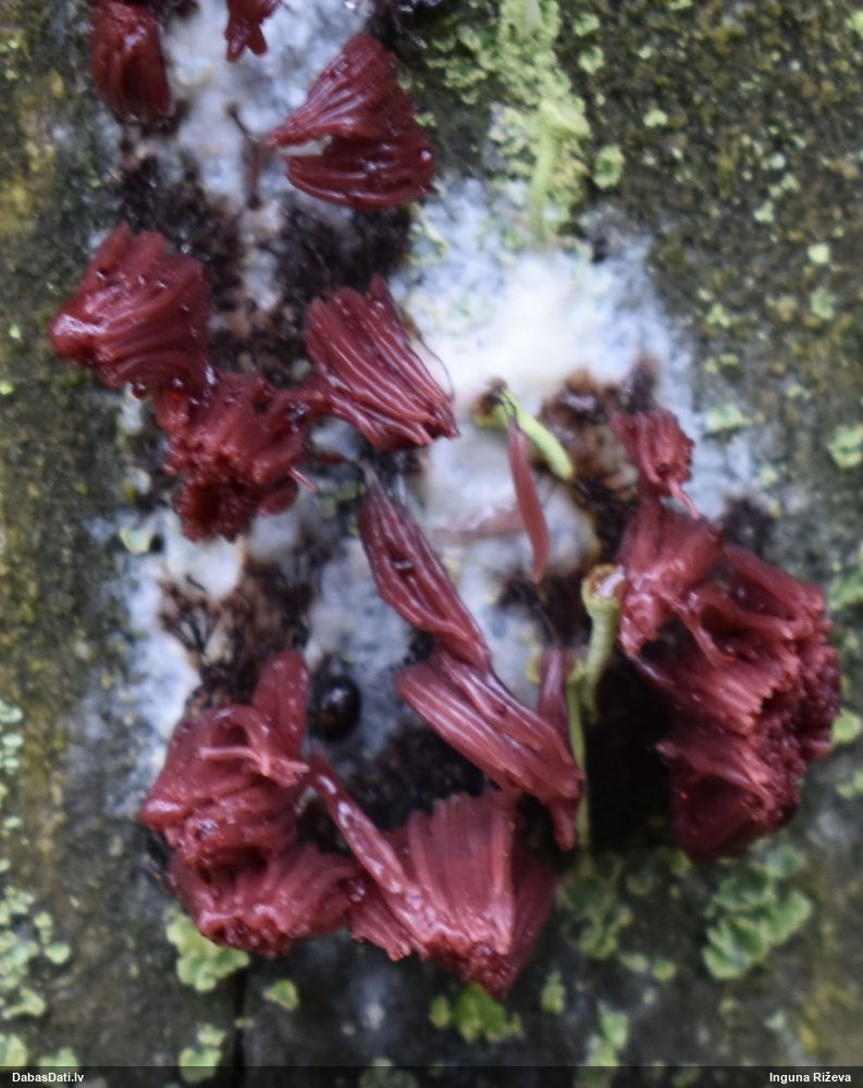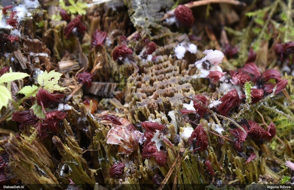 Nemikroskopēju, jo vajadzētu būt C.purpurea, tomēr, ja sanāks, mikroskopiski papētīšu, jo šai ar savulaik ar sporu izmēriem mums un aprakstos kaut kas nesapasēja.