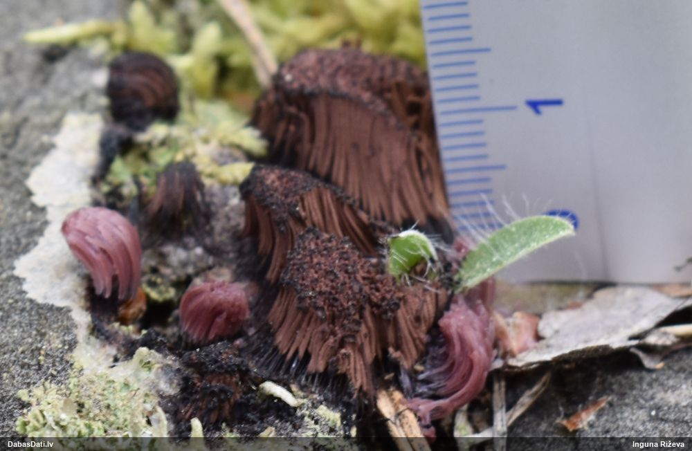 Nemikroskopēju, jo vajadzētu būt C.purpurea, tomēr, ja sanāks, mikroskopiski papētīšu, jo šai ar savulaik ar sporu izmēriem mums un aprakstos kaut kas nesapasēja.
