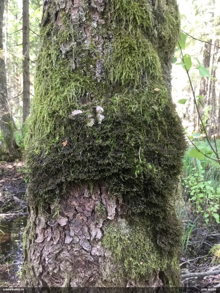 Skujkoks nav par tuvumā. Ir tikai lapu koki - lazda, kastanis, ābelītes. Otrpus celmam (D pusē) lejasdaļā, ko pamanīju pirmo, arī bija kaut kas no šim līdzīga, bet tik izsporojies, ka palicis tikai paliels brūns sporu pleķis. Intriga pavērot nākamgad.
