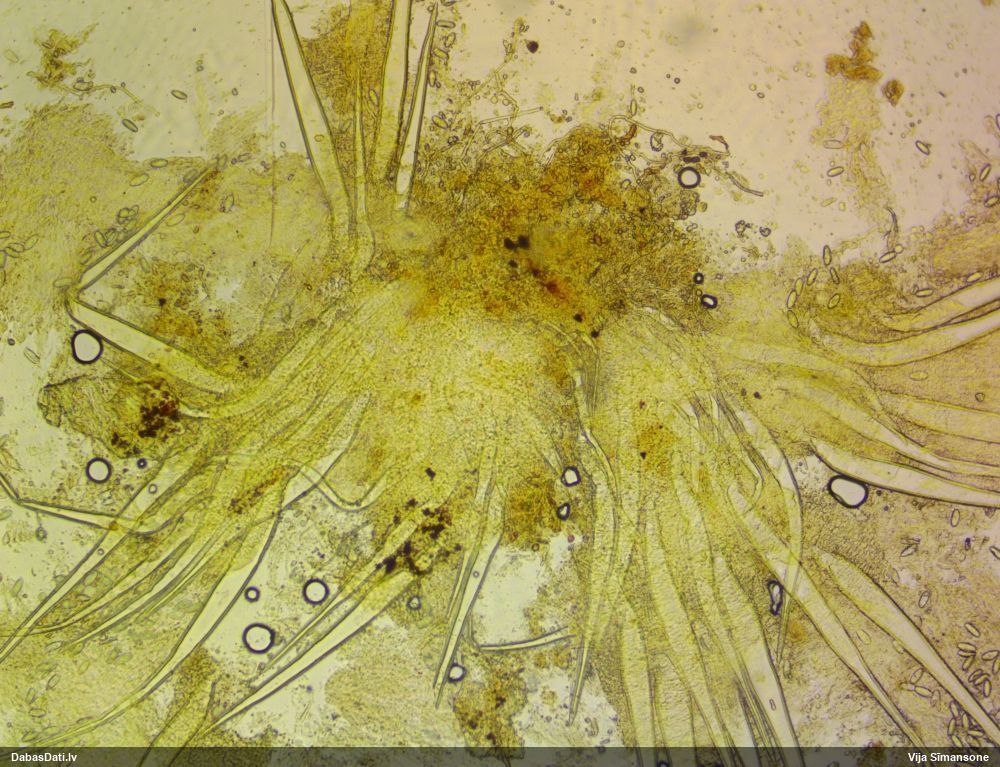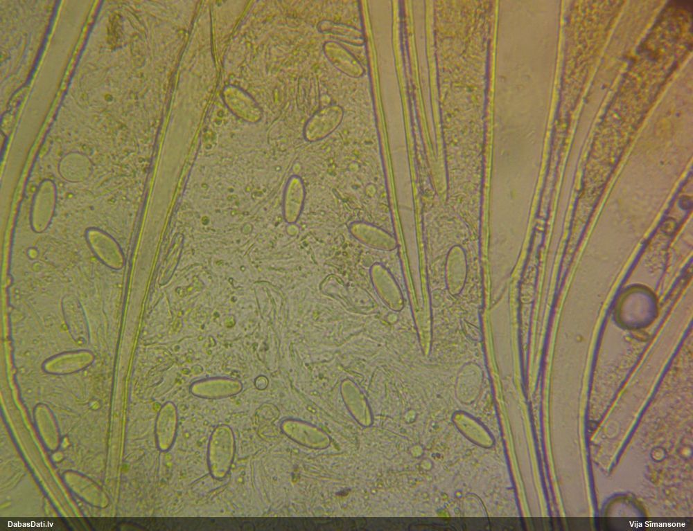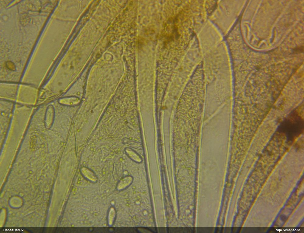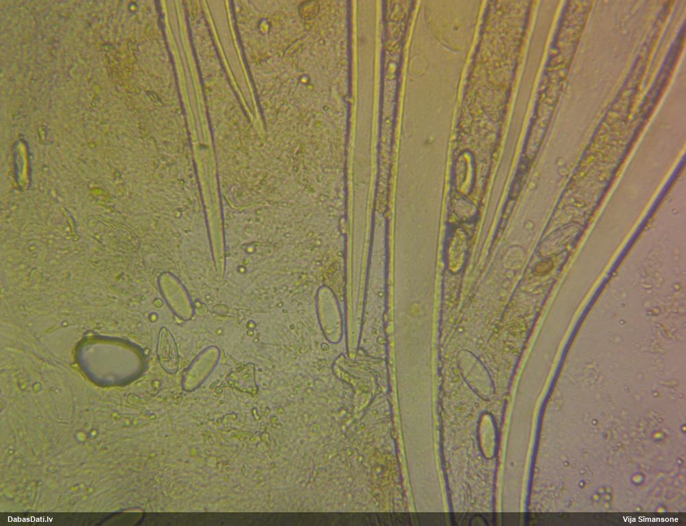 Nemikroskopēju, tikai vizuāli apskatīju. Ja kaut kad pētīšu šo sugu grupu, tad mikroskopiski pārbaudīšu.