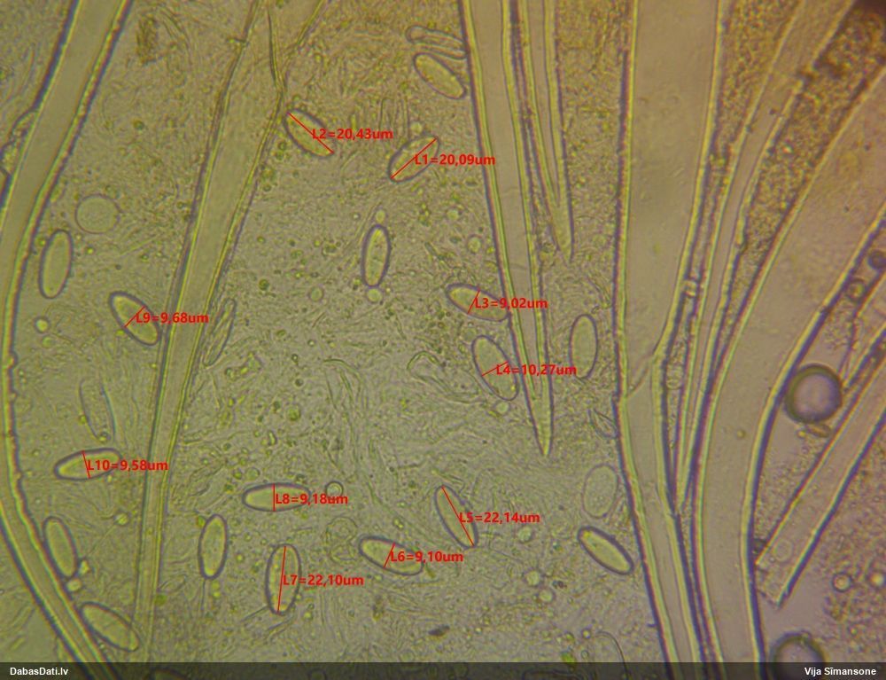 Liels paldies Vija par mikroskopējumiem!! Jā nu, saprast neko tā skaidri nevar. Šitie visi tak izskatās kā tipiski rufas, bet sporas katram citādas.. Nu kaut vai šis pats un šis: https://dabasdati.lv/lv/observation/123bcde42995588676726de1df696803/ Vizuāli pilnīgi dvīņi, un tik un tā sporas atšķiras. Un vasaras sākums un apaļas sporas - licentii šim arī nesanāks, lai arī rūsgano pakāji varētu ieskaitīt. Bez DNS pētījumiem laikam nav vērts mēģināt šos saprast.