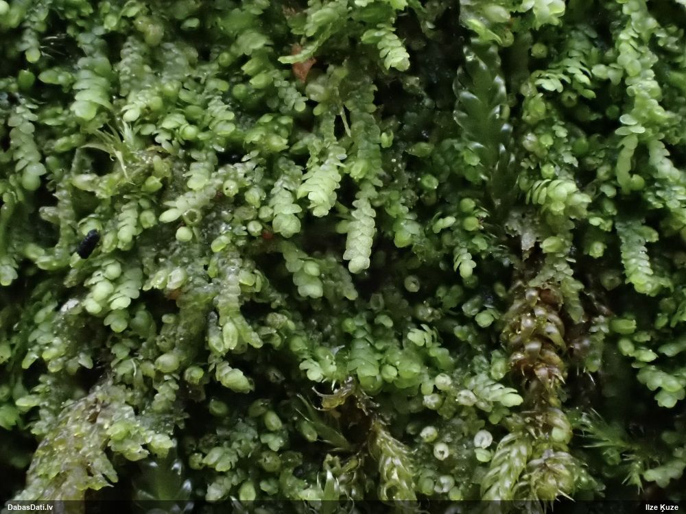 Ļoti ļoti labs atradums! Šo varētu likt aizsargājamo sugu sarakstā, jo pasaulē reti ziņota, Latvijā tikai izcilās vietās atrasta. Par laimi, paraugā bija arī nobrieduši eksemplāri, kam sporu mākonis knapi turējās klāt - un tā ir arī raksturīga sugas pazīme. Bet visuzskatāmākais te ir sporu virsmas raksts, tāpēc te svarīgi redzēt sporas vislielākajā palielinājumā.