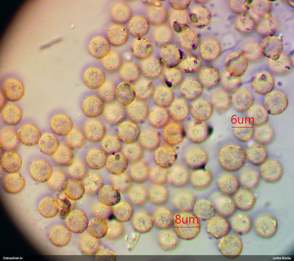Liels paldies Vija par mikroskopējumiem!! Jā nu, saprast neko tā skaidri nevar. Šitie visi tak izskatās kā tipiski rufas, bet sporas katram citādas.. Nu kaut vai šis pats un šis: https://dabasdati.lv/lv/observation/123bcde42995588676726de1df696803/ Vizuāli pilnīgi dvīņi, un tik un tā sporas atšķiras. Un vasaras sākums un apaļas sporas - licentii šim arī nesanāks, lai arī rūsgano pakāji varētu ieskaitīt. Bez DNS pētījumiem laikam nav vērts mēģināt šos saprast.