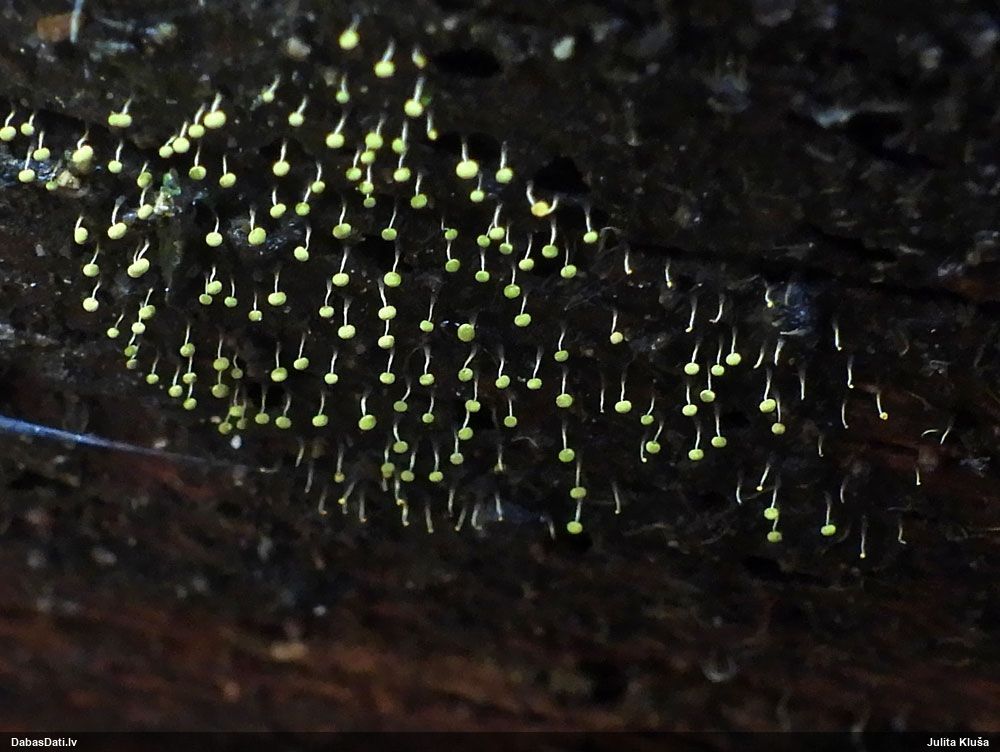 Hmm, nepievērsu tam uzmanību, bet tas interesanti, paldies! Vispār izskatās pēc vālenītes, ne kūlītes, speciāli salīdzināju aprakstus ar Stemonitis splendens, bet mikroskopiski tomēr atbilst visām kūlītes pazīmēm, un abas mikroskopētās kūlītes - vienādas. Tur kāds skujkoks blakus neaug?