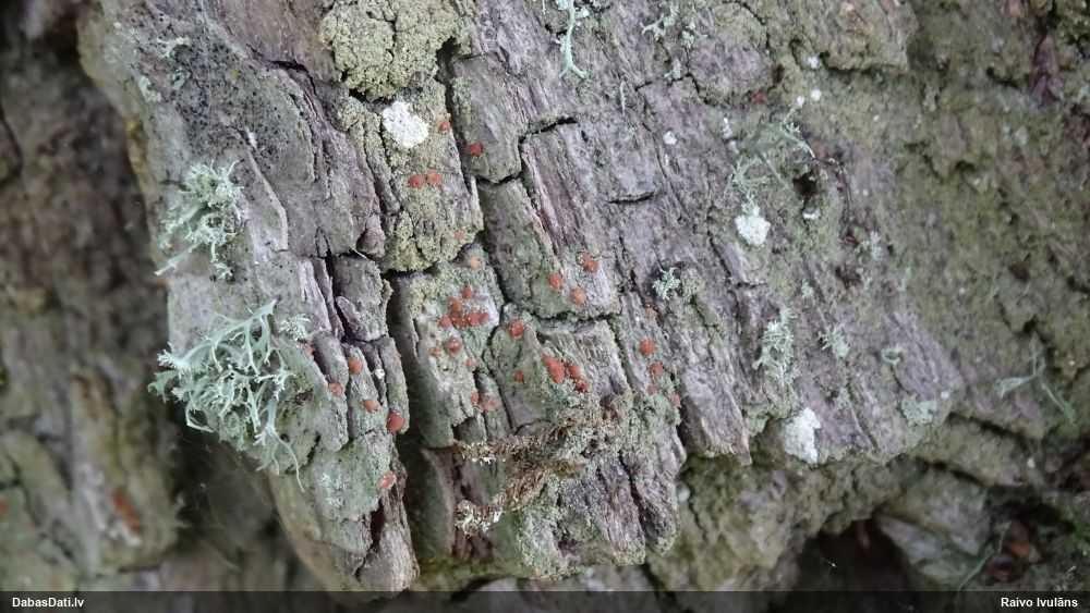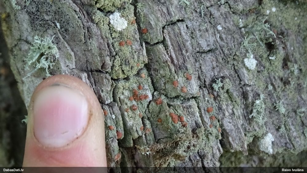 Skujkoks nav par tuvumā. Ir tikai lapu koki - lazda, kastanis, ābelītes. Otrpus celmam (D pusē) lejasdaļā, ko pamanīju pirmo, arī bija kaut kas no šim līdzīga, bet tik izsporojies, ka palicis tikai paliels brūns sporu pleķis. Intriga pavērot nākamgad.