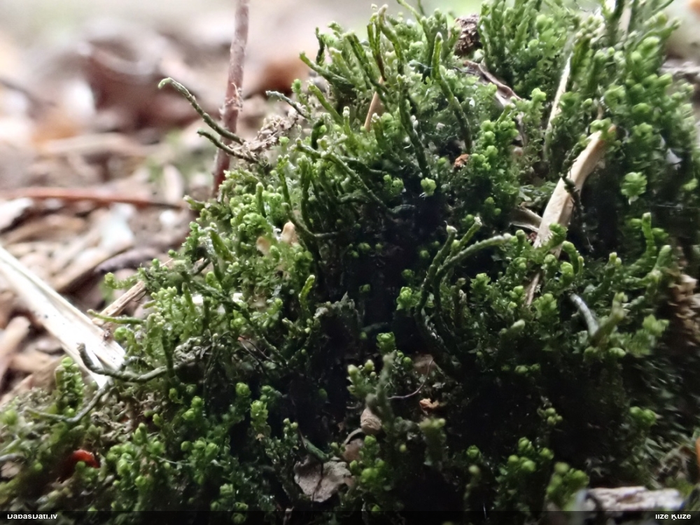 Ļoti ļoti labs atradums! Šo varētu likt aizsargājamo sugu sarakstā, jo pasaulē reti ziņota, Latvijā tikai izcilās vietās atrasta. Par laimi, paraugā bija arī nobrieduši eksemplāri, kam sporu mākonis knapi turējās klāt - un tā ir arī raksturīga sugas pazīme. Bet visuzskatāmākais te ir sporu virsmas raksts, tāpēc te svarīgi redzēt sporas vislielākajā palielinājumā.