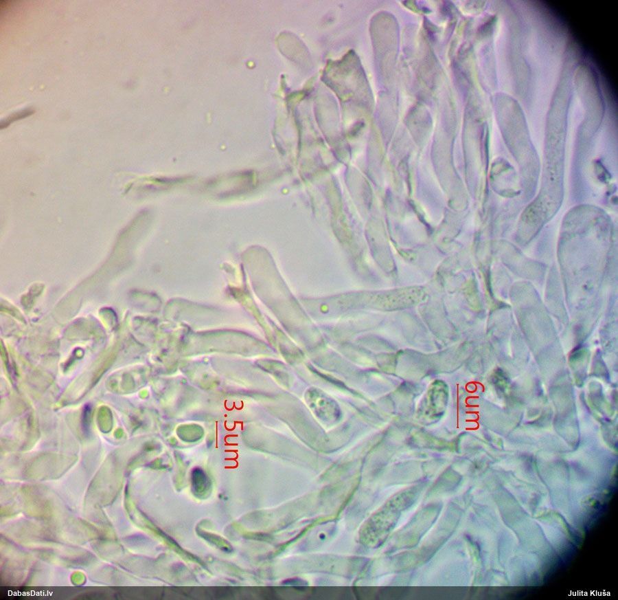 Nemikroskopēju, tikai vizuāli apskatīju. Ja kaut kad pētīšu šo sugu grupu, tad mikroskopiski pārbaudīšu.