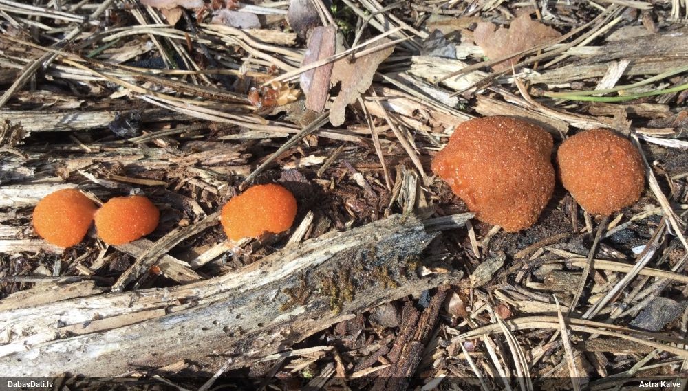 Hmm, nepievērsu tam uzmanību, bet tas interesanti, paldies! Vispār izskatās pēc vālenītes, ne kūlītes, speciāli salīdzināju aprakstus ar Stemonitis splendens, bet mikroskopiski tomēr atbilst visām kūlītes pazīmēm, un abas mikroskopētās kūlītes - vienādas. Tur kāds skujkoks blakus neaug?