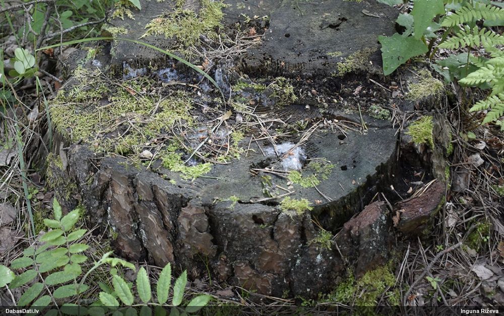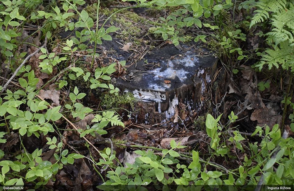 Skujkoks nav par tuvumā. Ir tikai lapu koki - lazda, kastanis, ābelītes. Otrpus celmam (D pusē) lejasdaļā, ko pamanīju pirmo, arī bija kaut kas no šim līdzīga, bet tik izsporojies, ka palicis tikai paliels brūns sporu pleķis. Intriga pavērot nākamgad.