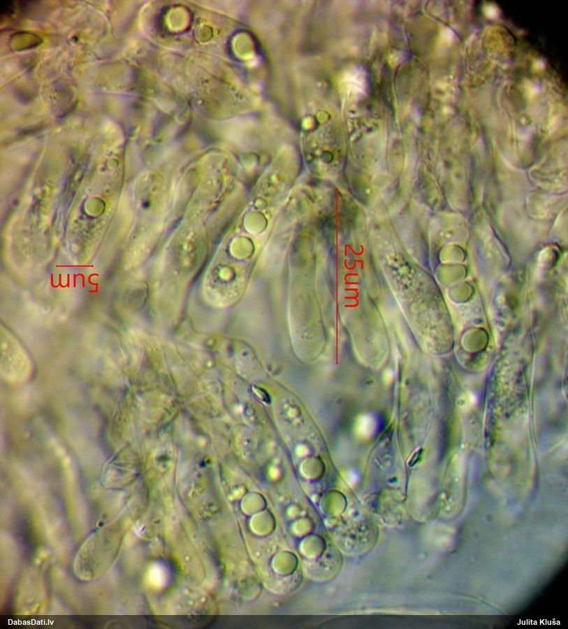 Nemikroskopēju, tikai vizuāli apskatīju. Ja kaut kad pētīšu šo sugu grupu, tad mikroskopiski pārbaudīšu.