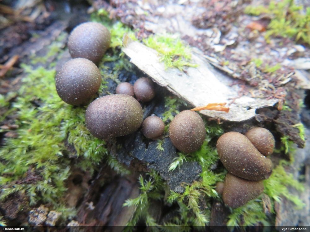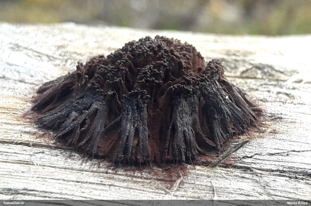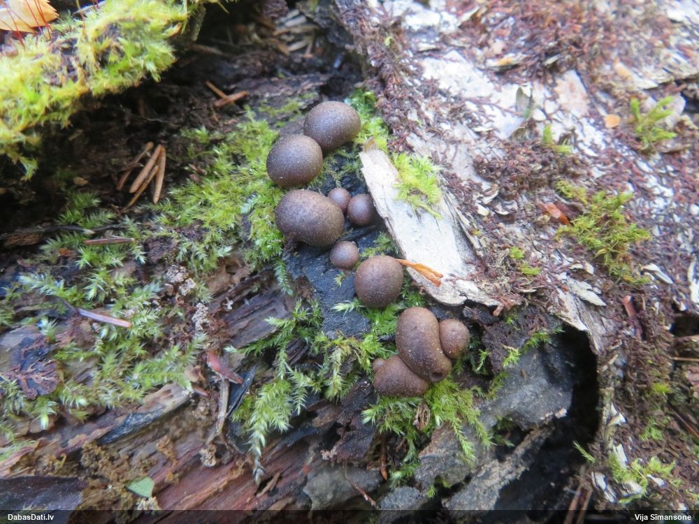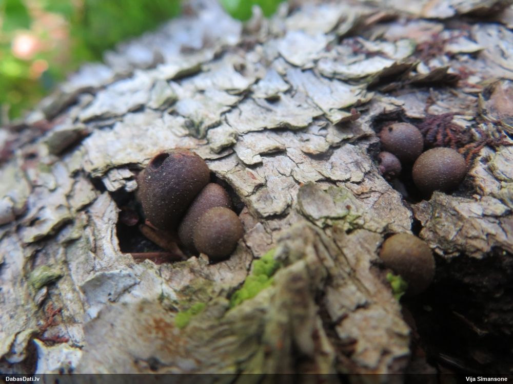 Hmm, nepievērsu tam uzmanību, bet tas interesanti, paldies! Vispār izskatās pēc vālenītes, ne kūlītes, speciāli salīdzināju aprakstus ar Stemonitis splendens, bet mikroskopiski tomēr atbilst visām kūlītes pazīmēm, un abas mikroskopētās kūlītes - vienādas. Tur kāds skujkoks blakus neaug?