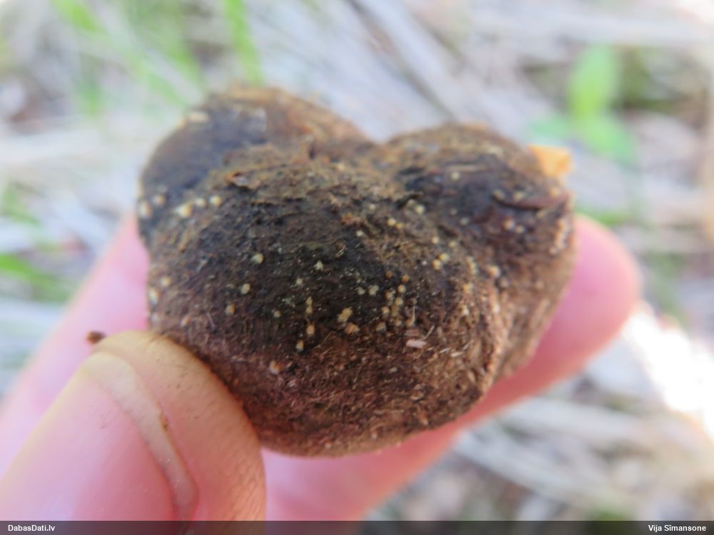 Gada sēnes 2025 sezonu noslēdzot: tagad ir pilnīgi skaidrs, ka šī ir tā pati kopš 2021. gada zināmā atradne, kuru četras dienas iepriekš novērojusi Guna Taube (https://dabasdati.lv/lv/observation/4bcf380310958ca8c977a7831844bb98/), tikai šoreiz izīmēta PAREIZAJĀ vietā (lai gan piezīmēs ģeogr. platuma skaitliskajā vērtībā ir drukas kļūda, kuras dēļ atradne iznāktu nobīdīta par 5½ km tieši uz dienvidiem).