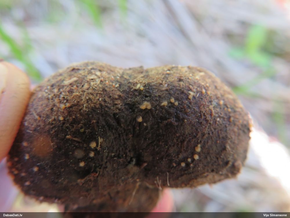 Gada sēnes 2025 sezonu noslēdzot: gan sakomunicējis pašu novērotāju, gan apsekojis uz vietas, pārliecinājos, ka tā tiešām ir 2021. gada atradne (DabasDatos nav ieziņota), tikai "aizbraukusi" par 100+ metriem uz ziemeļaustrumiem no patiesās vietas. Četras dienas vēlāk to, man klātesot, novērojis Raivo Ivulāns un ieziņojis DabasDatos (https://dabasdati.lv/lv/observation/i6u8b1t1411oup15o8nbroneg6/) jau PAREIZAJĀ vietā (taču piezīmēs ģeogr. platuma skaitliskajā vērtībā ir drukas kļūda, kuras dēļ atradne iznāktu nobīdīta par 5½ km tieši uz dienvidiem).