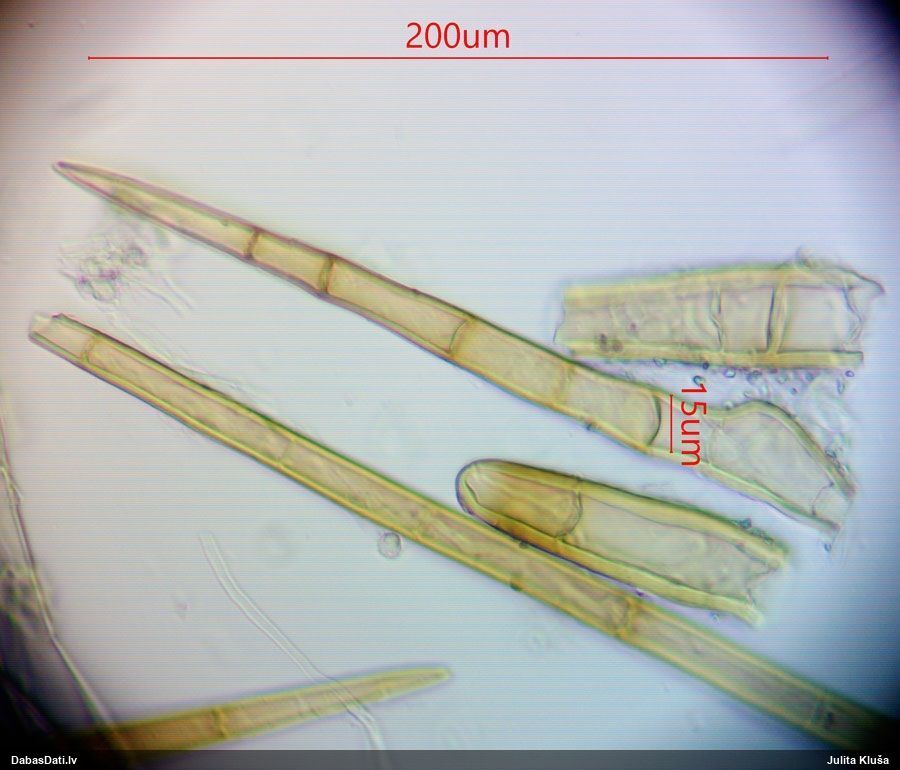 Nemikroskopēju, tikai vizuāli apskatīju. Ja kaut kad pētīšu šo sugu grupu, tad mikroskopiski pārbaudīšu.
