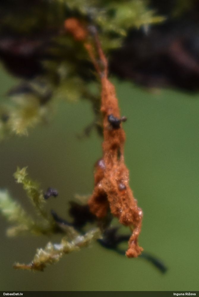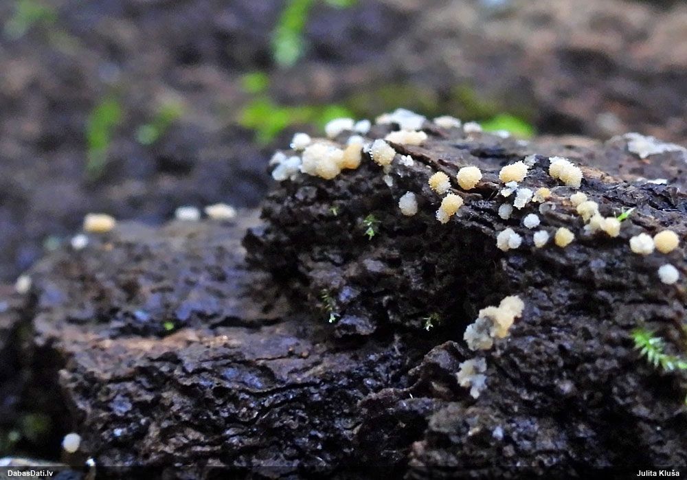 Hmm, nepievērsu tam uzmanību, bet tas interesanti, paldies! Vispār izskatās pēc vālenītes, ne kūlītes, speciāli salīdzināju aprakstus ar Stemonitis splendens, bet mikroskopiski tomēr atbilst visām kūlītes pazīmēm, un abas mikroskopētās kūlītes - vienādas. Tur kāds skujkoks blakus neaug?