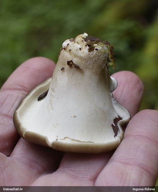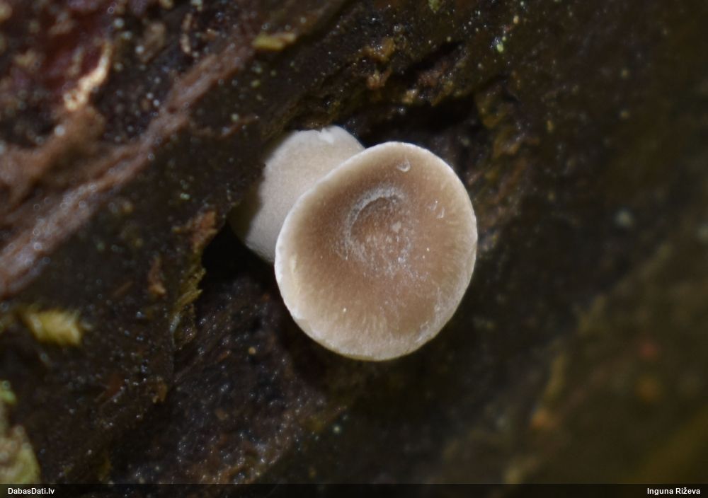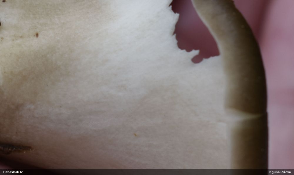 Šim Vijas paraugam iekšas precīzi tādas pašas - baltdzeltenas, ar kapilīciju ar maziem mezgliem, un virsma balta. Sporas gan lielākas: https://dabasdati.lv/lv/observation/b146f03a39b8789e2897007d9e464255/