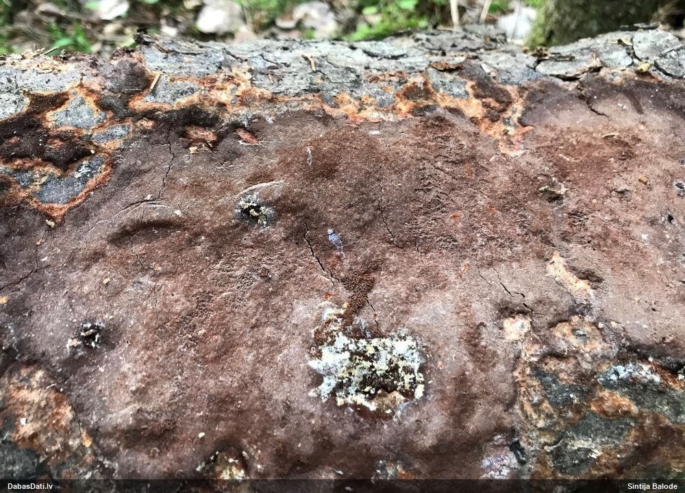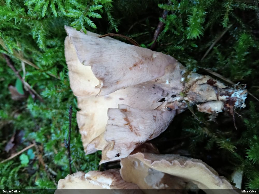 Gada sēnes 2025 sezonu noslēdzot: gan sakomunicējis pašu novērotāju, gan apsekojis uz vietas, pārliecinājos, ka tā tiešām ir 2021. gada atradne (DabasDatos nav ieziņota), tikai "aizbraukusi" par 100+ metriem uz ziemeļaustrumiem no patiesās vietas. Četras dienas vēlāk to, man klātesot, novērojis Raivo Ivulāns un ieziņojis DabasDatos (https://dabasdati.lv/lv/observation/i6u8b1t1411oup15o8nbroneg6/) jau PAREIZAJĀ vietā (taču piezīmēs ģeogr. platuma skaitliskajā vērtībā ir drukas kļūda, kuras dēļ atradne iznāktu nobīdīta par 5½ km tieši uz dienvidiem).