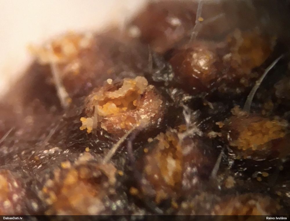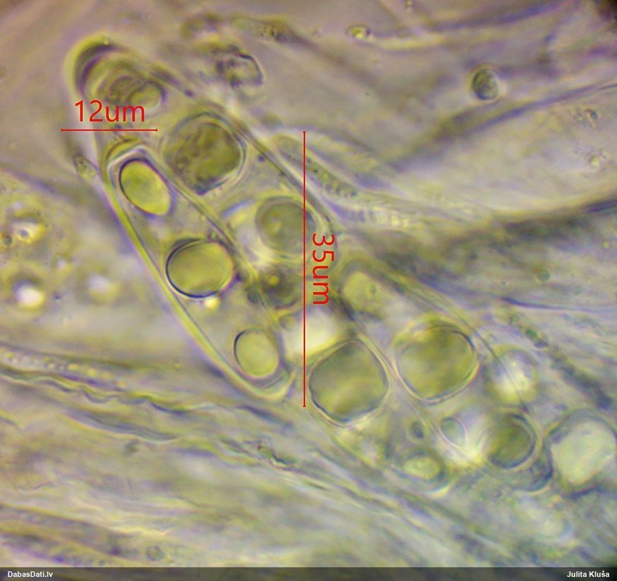 Nemikroskopēju, tikai vizuāli apskatīju. Ja kaut kad pētīšu šo sugu grupu, tad mikroskopiski pārbaudīšu.
