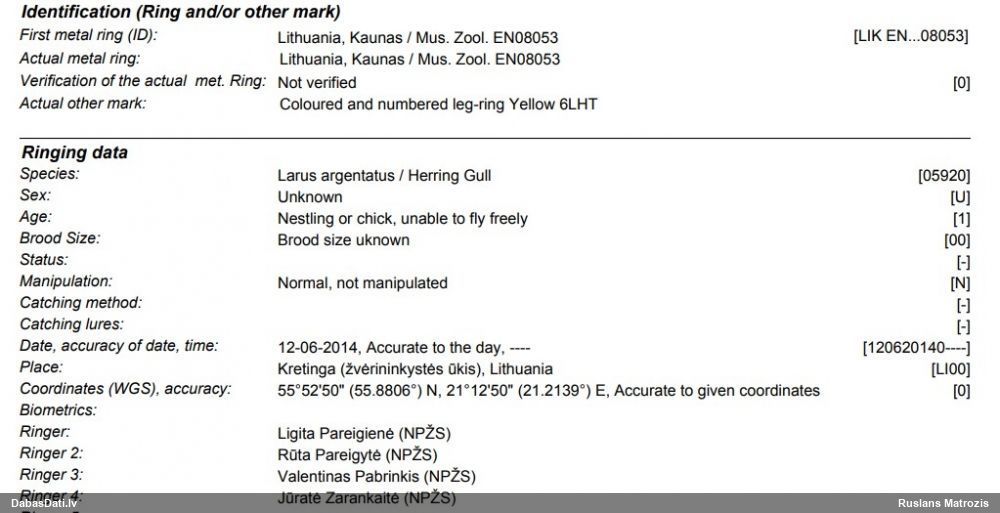 Krāsu gredzens: 085T Dzimums: male Vecums: adult Gredzenošanas datums: 09.01.2025 Gredzenošanas vieta: Dohren, Germany Krāsu gredzens: 319E Dzimums: female Vecums: 2y Gredzenošanas datums: 07.01.2020 Gredzenošanas vieta: Loosbroek, Noord-Brabant, Netherlands Krāsu gredzens: 034T transmiter Dzimums: female Vecums: adult Gredzenošanas datums: 16.12.2021 Gredzenošanas vieta: Groß Fullen, Emsland, Germany Krāsu gredzens: 069T transmiter Vecums: 3y Gredzenošanas datums: 09.01.2025 Atrašanas datums: 24.11.2025 Gredzenošanas vieta: Dohren, Germany