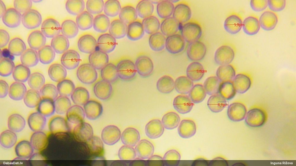 Liels paldies Vija par mikroskopējumiem!! Jā nu, saprast neko tā skaidri nevar. Šitie visi tak izskatās kā tipiski rufas, bet sporas katram citādas.. Nu kaut vai šis pats un šis: https://dabasdati.lv/lv/observation/123bcde42995588676726de1df696803/ Vizuāli pilnīgi dvīņi, un tik un tā sporas atšķiras. Un vasaras sākums un apaļas sporas - licentii šim arī nesanāks, lai arī rūsgano pakāji varētu ieskaitīt. Bez DNS pētījumiem laikam nav vērts mēģināt šos saprast.
