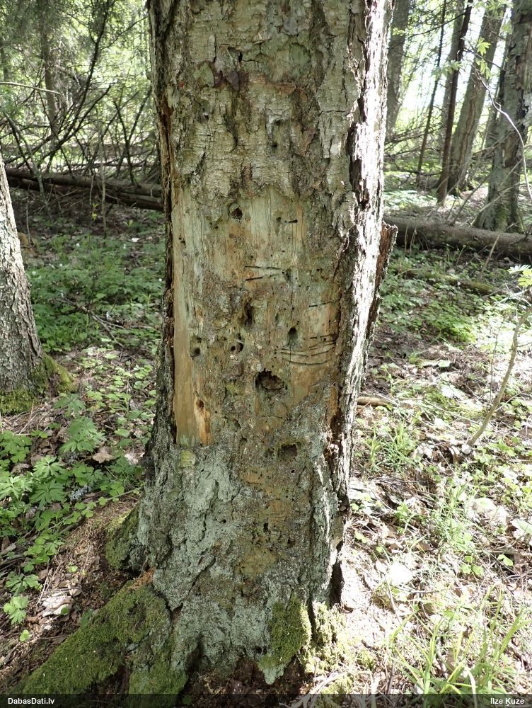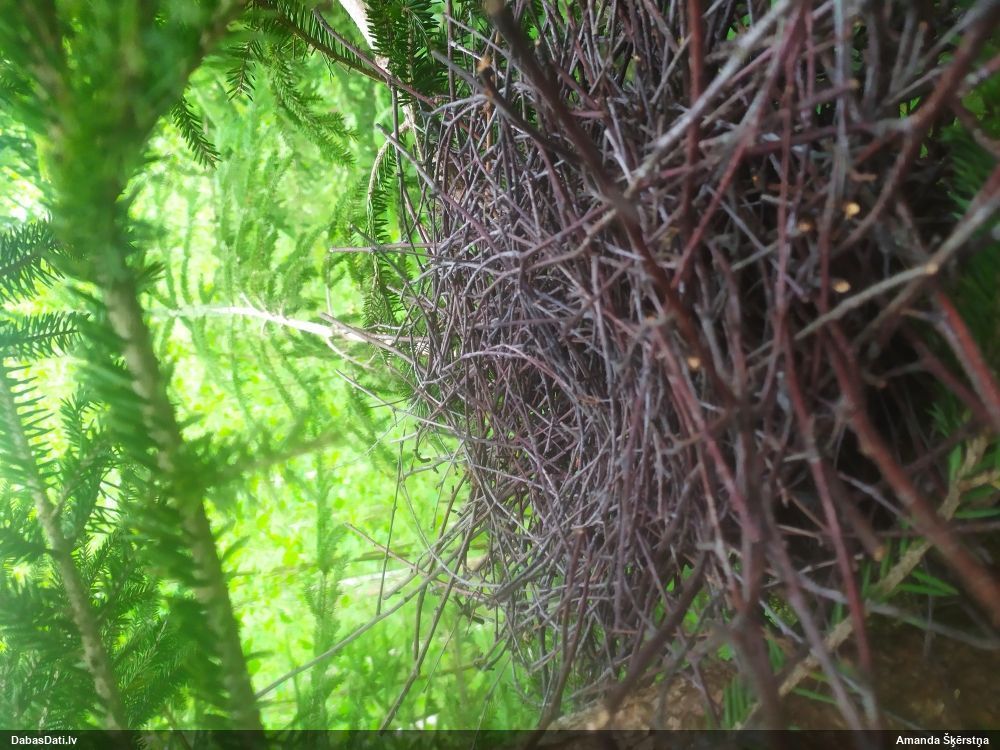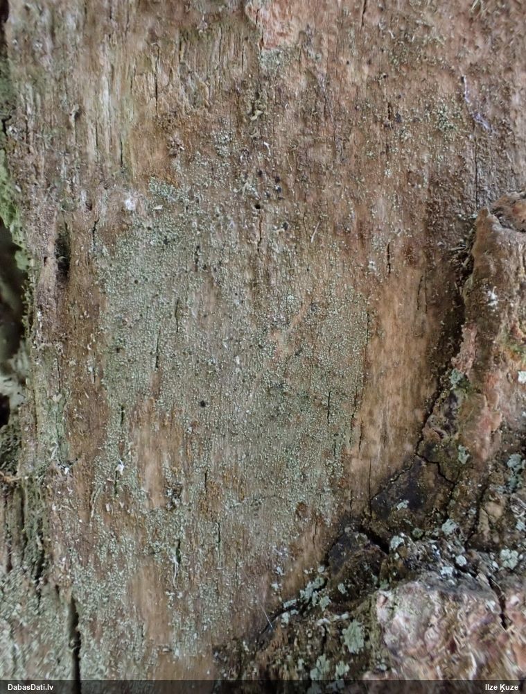 Skujkoks nav par tuvumā. Ir tikai lapu koki - lazda, kastanis, ābelītes. Otrpus celmam (D pusē) lejasdaļā, ko pamanīju pirmo, arī bija kaut kas no šim līdzīga, bet tik izsporojies, ka palicis tikai paliels brūns sporu pleķis. Intriga pavērot nākamgad.