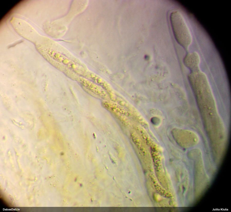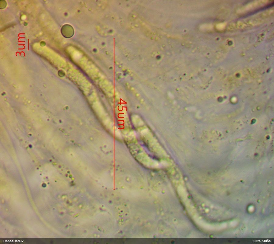 Nemikroskopēju, tikai vizuāli apskatīju. Ja kaut kad pētīšu šo sugu grupu, tad mikroskopiski pārbaudīšu.