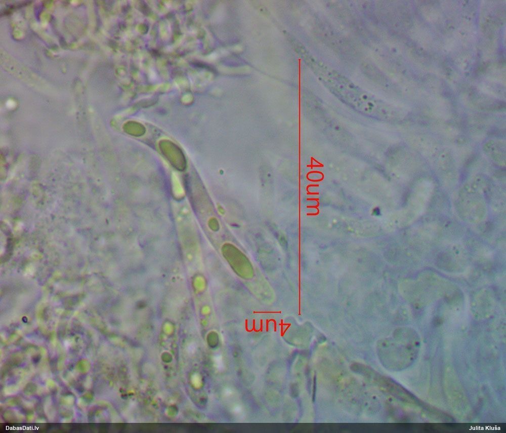 Nemikroskopēju, tikai vizuāli apskatīju. Ja kaut kad pētīšu šo sugu grupu, tad mikroskopiski pārbaudīšu.